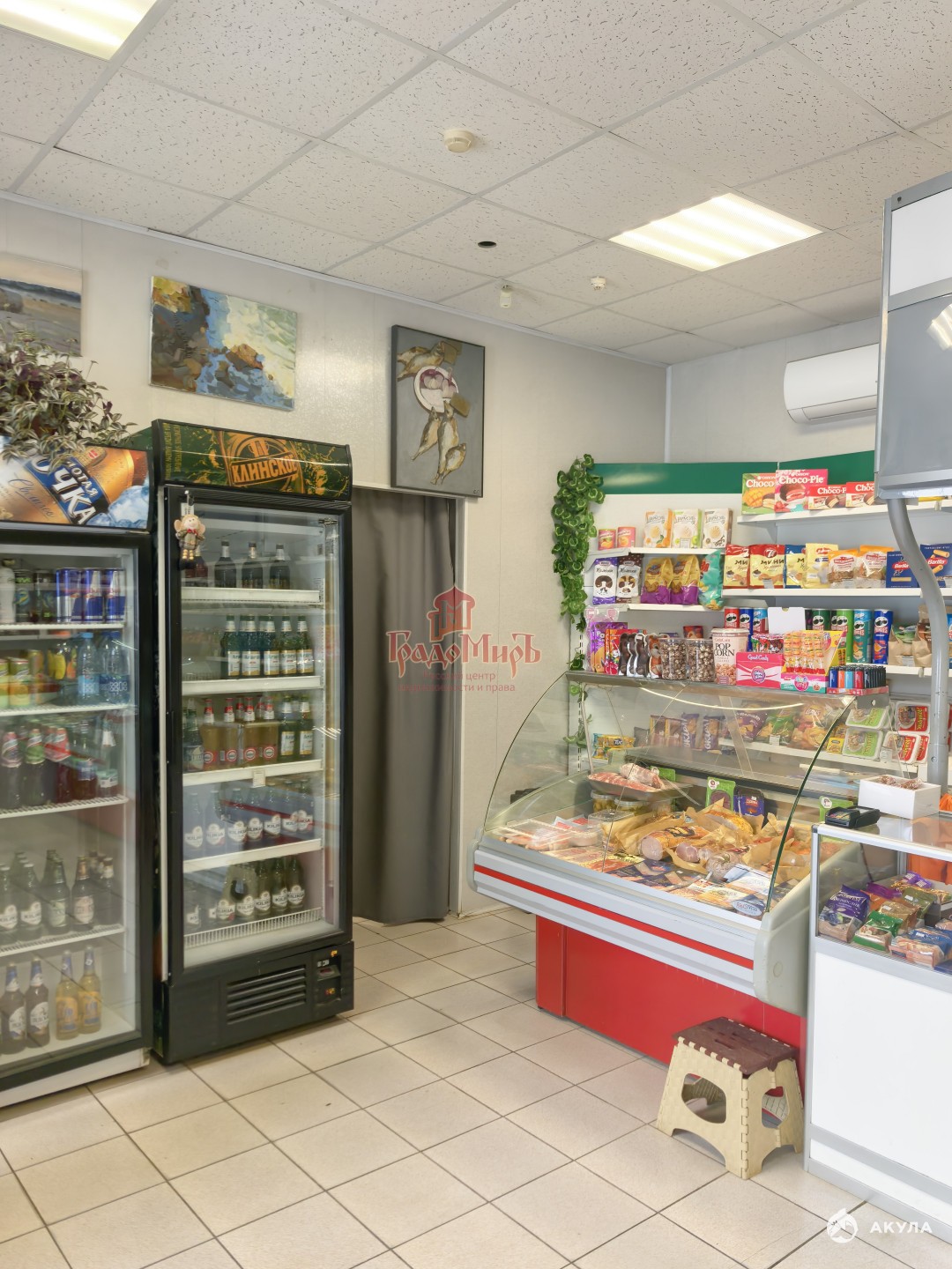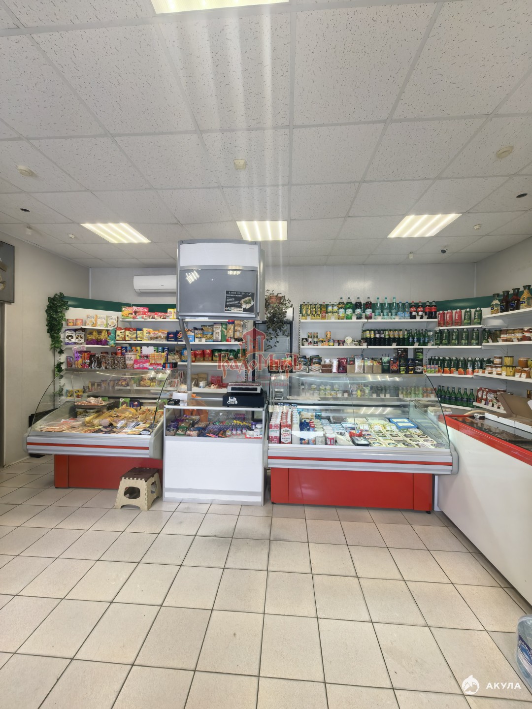 Помещение состоит из торгового зала 32 кв м, подсобного помещения 14 кв м, санузла. При продаже в магазине остается оборудование (витрины, витрина-холодильник, морозильник, кофе-машина, и прочее - обсуждается при просмотре).