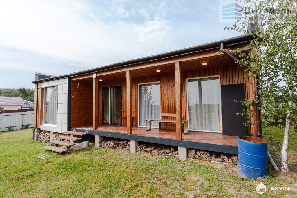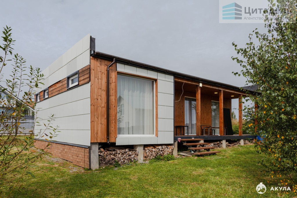 Дом построен по индивидуальному проекту из бруса по каркасной технологии в 2022 г. Дом возведен на железобетонных сваях. Стены, полы и крыша утеплены, поэтому дом пригоден для круглогодичного проживания. Панорамные окна в спальне и гостиной открывают вид на лес. В доме сквозной проход на задний двор. Отопление дома электрическое. Водоснабжение посредством скважины, канализация септик. Электричество 15 кВт три фазы.