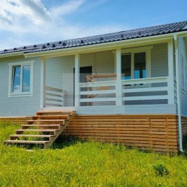 Лот 68417. Яковлево. Новый современный 1-этажный коттедж площадью 133 кв.м без отделки, но с коммуникациями в небольшом уютном СТ "Энергетик" в окружении грибного леса недалеко от Москвы. Построенный из газобетонных блоков и утепленный материалом ROCKWOOL 50 мм, внешне стены...
